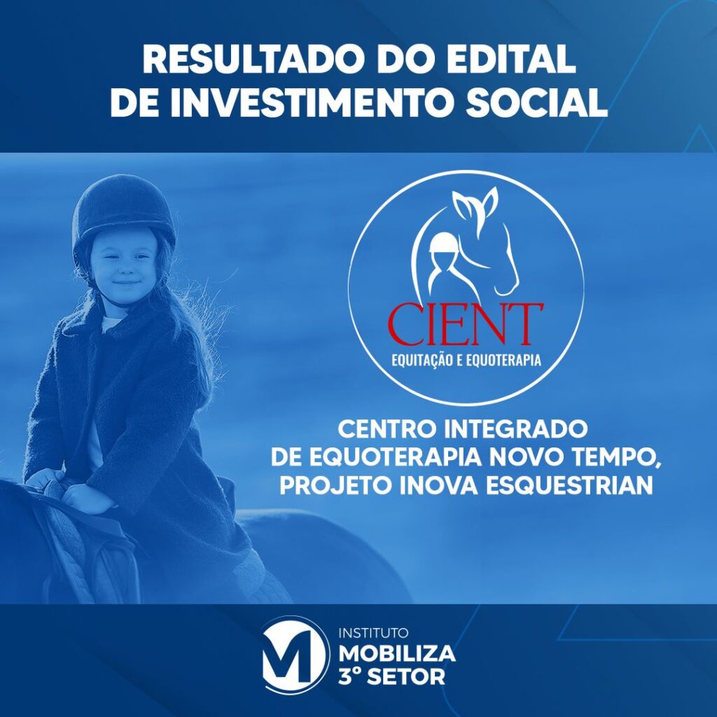 Com grande satisfação, o Instituto Mobiliza 3° Setor revela o resultado do Edital de Lançamento, que teve como objetivo selecionar projetos inovadores e promissores no âmbito do investimento social. Entre as propostas recebidas, destacou-se o Centro Integrado de Equoterapia Novo Tempo – Projeto Inova Esquestrian, merecedor do prêmio máximo dessa iniciativa. Após uma criteriosa avaliação […]